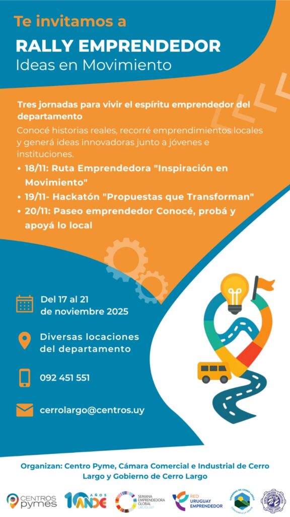 Desde el Centro Pyme Cerro Largo invitamos a su institución a participar en esta jornada de creatividad e innovación, en el marco de la Semana Global del Emprendimiento.